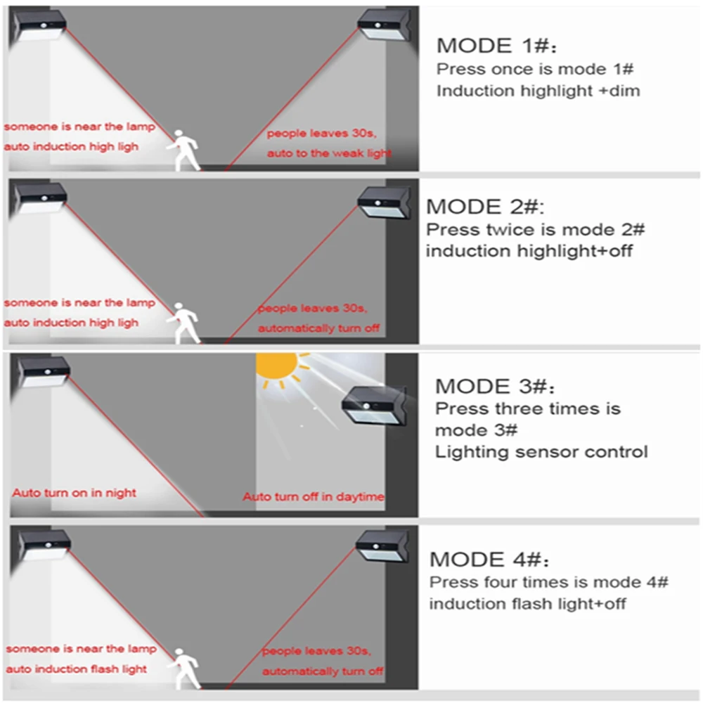 FANHHUI 48 Led Solar Motion Sensor Light for Home 4 Mode 20Lumens Outdoor Emergency Security Garden Solar Wall Light