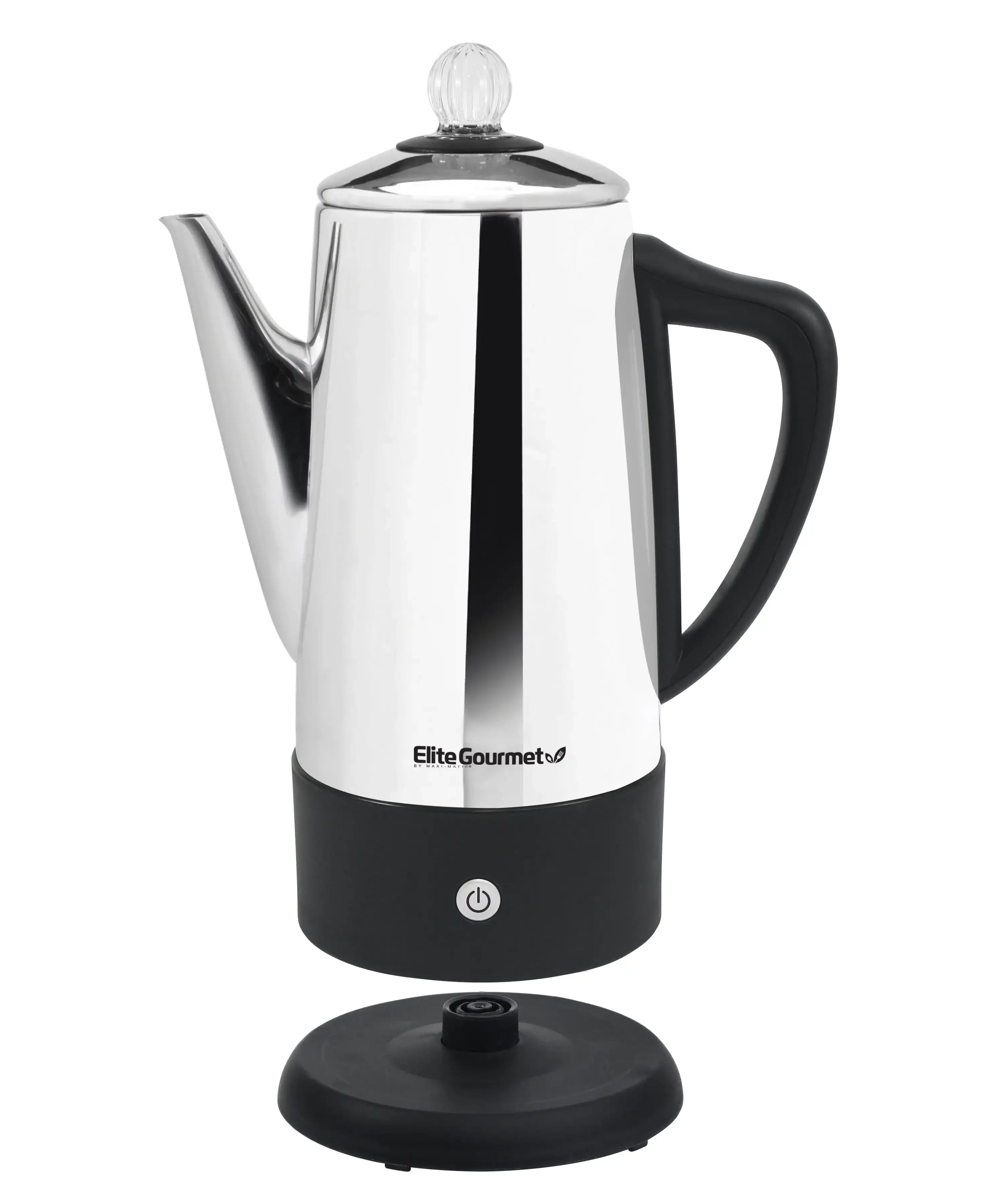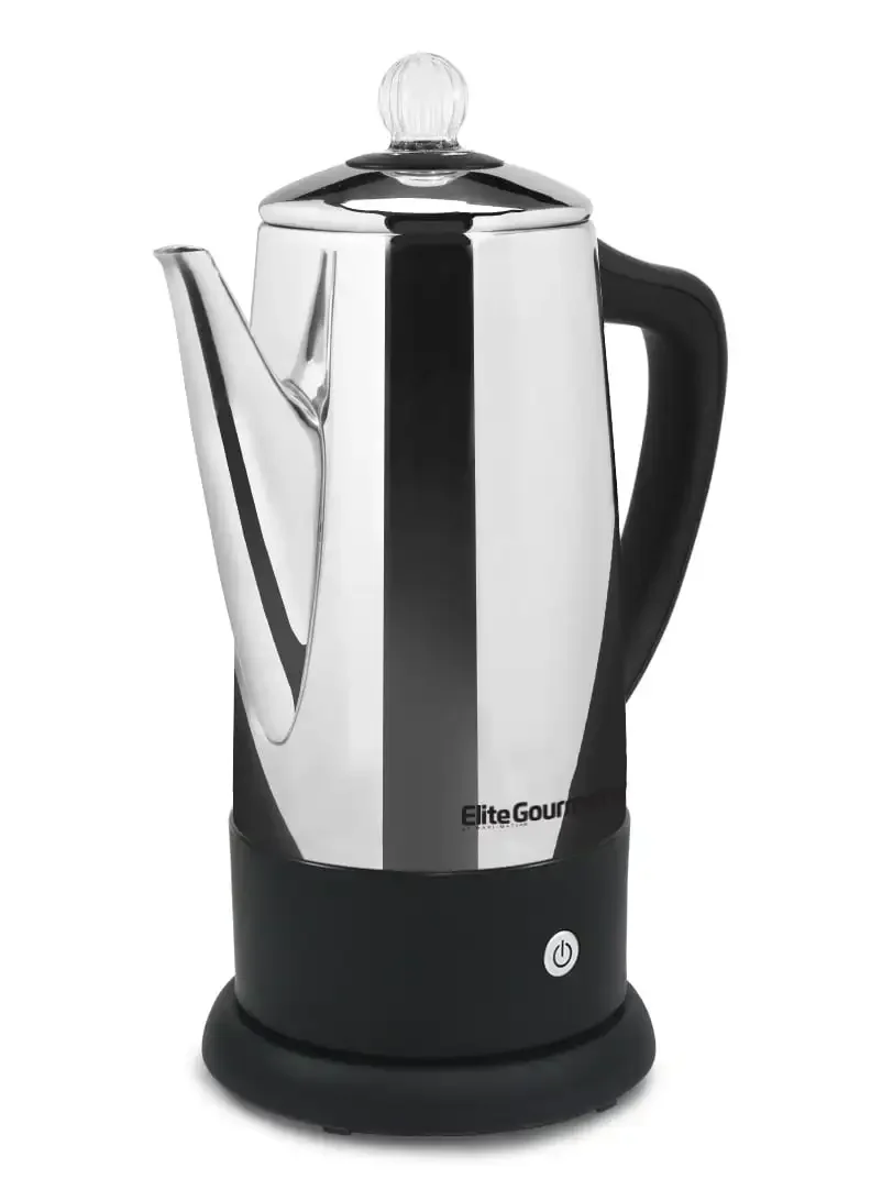 Brewing hot beverages the old fashioned way has never been easier with the new Elite Platinum 12 Cup Automatic Tea & Coffee Percolator. This lightweight, portable unit brews up to 12 delicious cups of your favorite coffee or tea. It features a removable easy to wash filter, power and ready indicator lights which let you know when your beverage is ready to be served, an automatic keep warm feature and a comfort grip heat resistant handle making serving safe and easy. With a convenient 360° swivel base providing cord-free serving and stylish stainless steel finish, this percolator makes the perfect addition to any home or office.